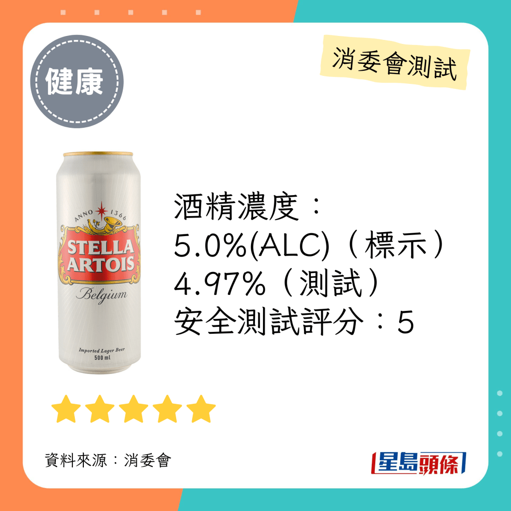 消委會(huì)啤酒滿分安全推介名單:STELLA ARTOIS。