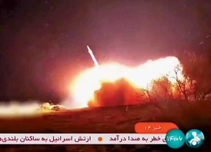 ▲伊朗國家電視臺(tái)播放向以色列發(fā)射導(dǎo)彈的畫面。