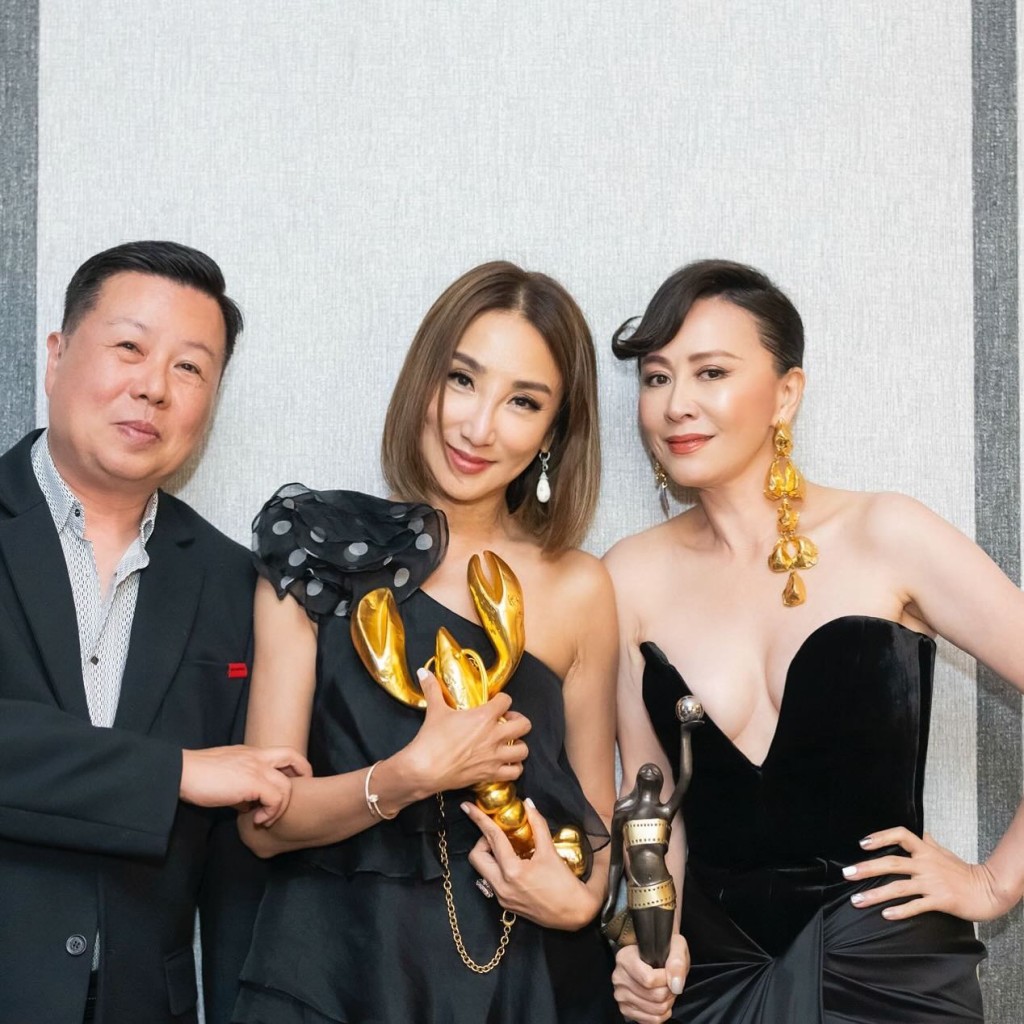 劉嘉玲黑色晚裝襯“金龍蝦”