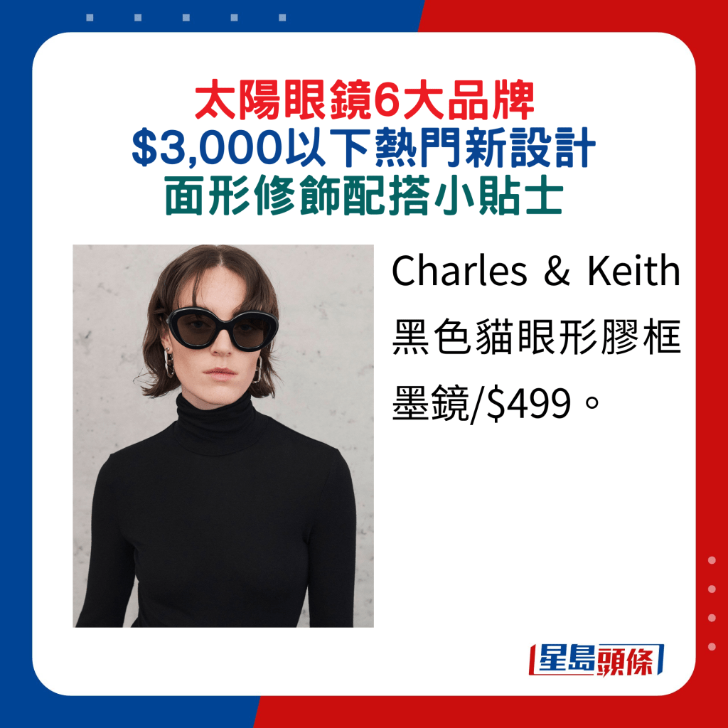 Charles & Keith黑色貓眼形膠框墨鏡 $499。