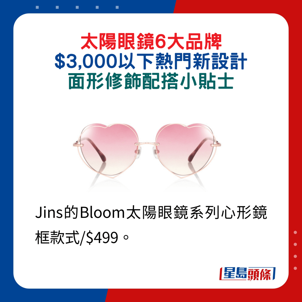 Jins的Bloom太陽眼鏡系列心形鏡框款式 $499。