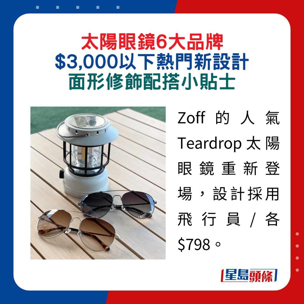Zoff的人氣 Teardrop太陽眼鏡重新登場,設(shè)計(jì)采用飛行員 各$798。