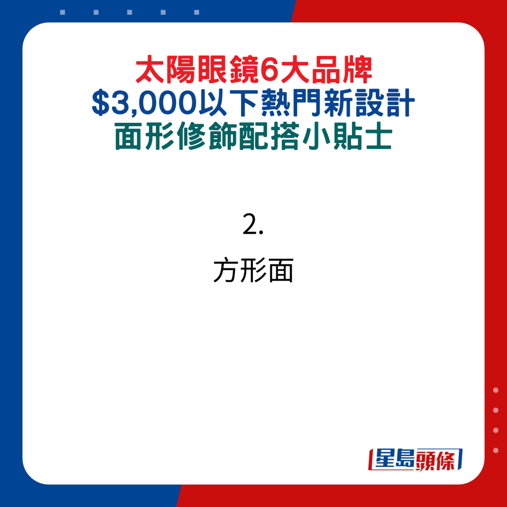 太陽眼鏡6大品牌$3,000以下熱門新設(shè)計(jì),面形修飾配搭小貼士:2.方形面