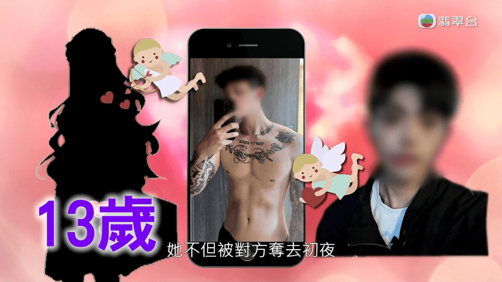 《東張西望》跟進(jìn)多名未成年少女聲稱被強(qiáng)奸及染上性病的事件,一名13歲少女Apple受訪詳述自己受害經(jīng)過(guò),她指與謝先生在網(wǎng)上認(rèn)識(shí),情竇初開(kāi)被花言巧語(yǔ)哄騙,因到訪謝先生家中看小動(dòng)物而遭強(qiáng)奸及強(qiáng)逼拍下性愛(ài)片。