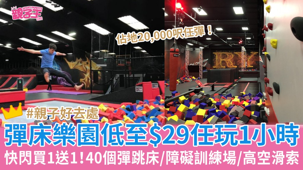 親子好去處2024 | Ryze彈床樂(lè)園低至$29任玩1小時(shí),40個(gè)彈跳床/障礙訓(xùn)練場(chǎng)/高空滑索