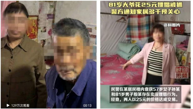 這條新聞是:“近日,四川瀘州警方通報(bào),民警在某居民樓內(nèi)查獲57歲女子孫某和81歲男子殷某,經(jīng)查,孫某將殷某帶至出租屋以25元的價(jià)格達(dá)成交易,實(shí)施賣淫嫖娼行為。警方通知男子家屬,要求及時(shí)對(duì)其進(jìn)行家庭干預(yù)和關(guān)心。目前,兩人因賣淫嫖娼被依法行政處罰。”