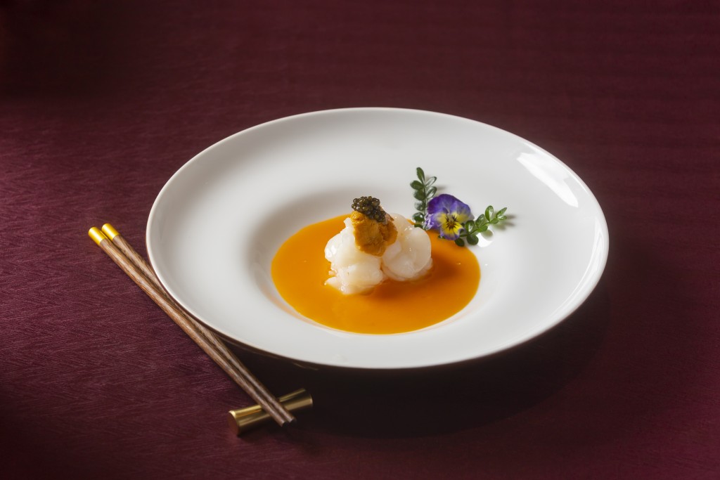 位于香港遨凱酒店的高級(jí)中菜廳莫云MOKONE,由曾任本地富豪私廚的雷師傅主理。他擅長(zhǎng)炮制精致及工序繁復(fù)的粵菜,如15年魚子海膽水晶蝦及古法崑侖鮑脯,都是注重賣相、工序與選材的手工粵菜。象是15年魚子海膽水晶蝦,雷師傅選用越南大虎蝦,取其口感爽脆彈牙又鮮嫩,另佐上海膽與15年魚子醬點(diǎn)綴,令蝦肉的鮮味更具層次。