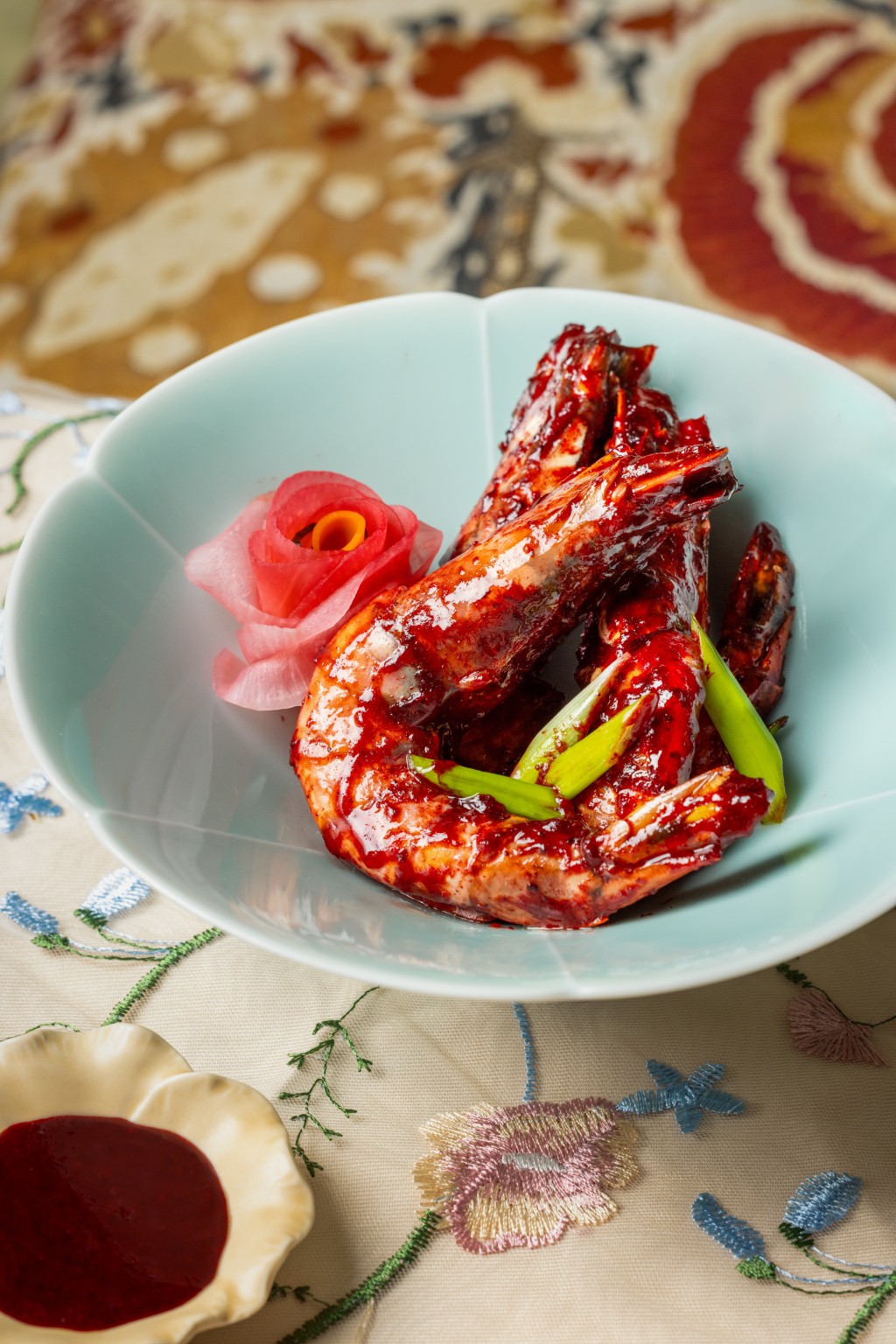 木子園是位于中環(huán)的中菜新餐廳,以加入新穎元素的京川料理作招徠。入行超過二十年的主廚黃希昌師傅,有扎實(shí)的京川菜基本功,亦拿手將傳統(tǒng)中菜及創(chuàng)意廚藝合二為一,令菜式富有個(gè)人煮食風(fēng)格。象是餐廳主打菜之一的櫻桃鴨肝,就是特意精挑由法國(guó)直送到港的鴨肝作菜。黃師傅用凝固的櫻桃醬造成鴨肝薄薄的外層,令視覺效果玲瓏剔透,就像一顆顆櫻桃般精巧,配合龍須糖襯托的獨(dú)特賣相,為這道創(chuàng)意中菜更加吸睛。另一招牌中菜是麻香脆皮牛肋骨。黃師傅將川菜中常用的麻辣香料混合多種配料,如洋蔥、姜蔥及豆瓣醬等,加入原條美國(guó)牛肋骨慢火燜煮至少1小時(shí),再沾上自家調(diào)配的炸漿炸至脆卜卜,上桌前才淋上秘制的麻香醬汁,吃起來陣陣麻香且不膩口。