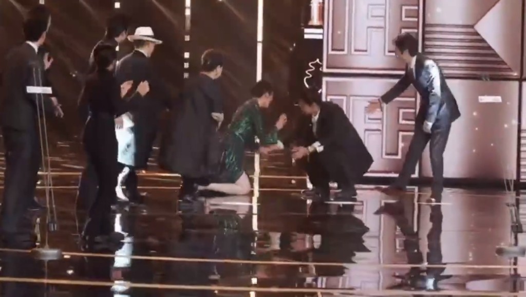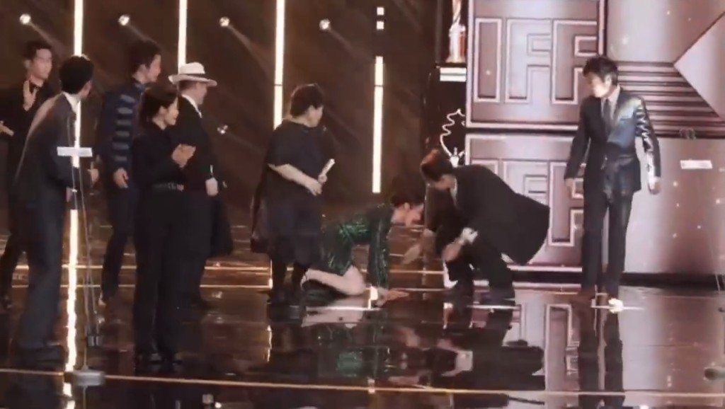 蔣勤勤臺上跌倒畫面瘋傳!Deep V高衩晚裝險走光