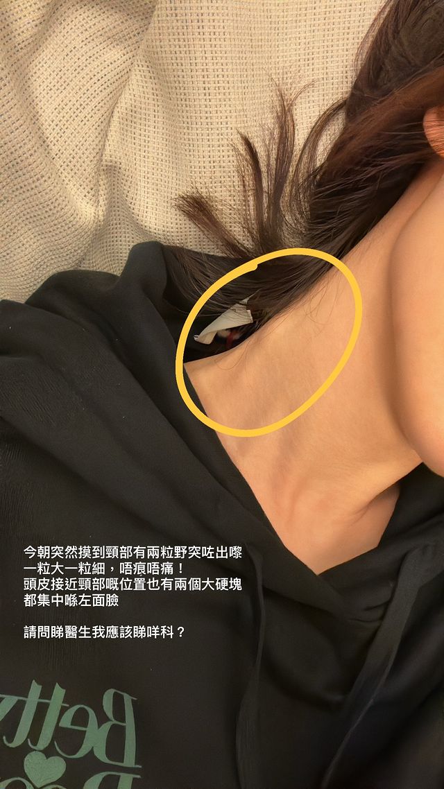 高海寧早前自爆條頸有兩粒東西凸起。