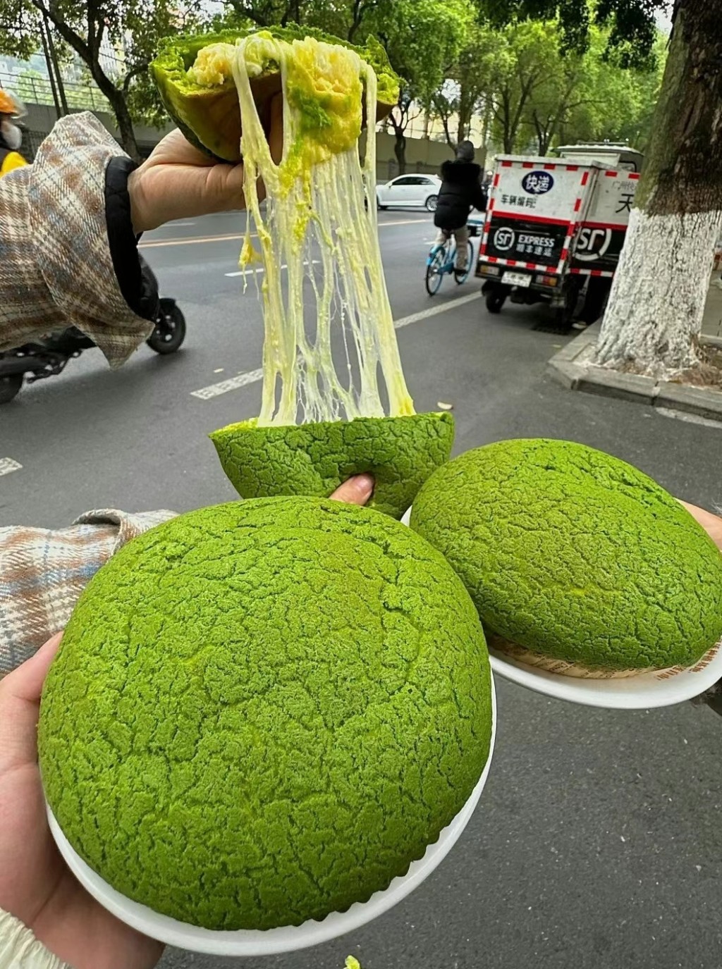 榴蓮控注意,榴蓮美食又有新出品!一喜同撈同煲除了招牌菜榴蓮雞煲外,最近推出一系列抹茶榴蓮點(diǎn)心,選用泰國東部尖竹汶府金枕頭榴蓮,百分百榴蓮肉入餡,每天手工現(xiàn)做。 必吃加大碼的抹茶榴蓮拉絲菠蘿包,18cm直徑,比人臉還大,外層酥脆,餡料用榴蓮肉和芝士手工現(xiàn)做,出爐后可以造出30cm拉絲,視覺效果十足,是人氣打卡美食。 其他美食有抹茶爆漿拉絲芝士餅、抹茶炭烤榴蓮¥29.8、榴蓮斑蘭凍凍菠蘿包¥16.8、特濃抹茶椰皇椰子凍、抹茶巨無霸榴蓮椰子凍¥69.8。