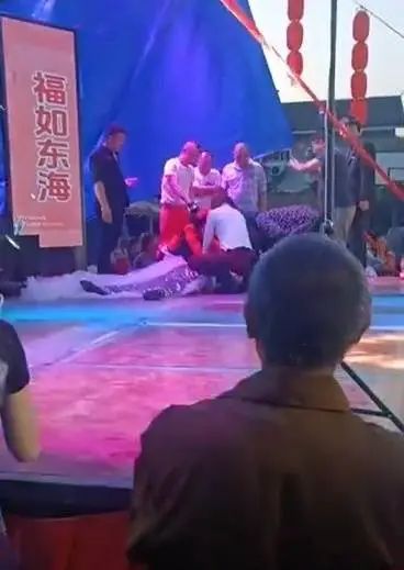 壽宴操辦過(guò)程中,一位女歌手突發(fā)意外昏倒。(視頻截圖)