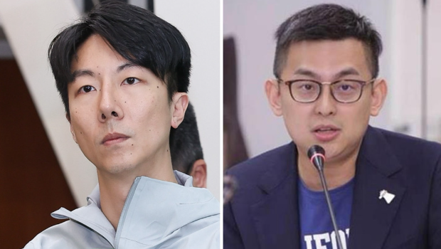民進黨新北市議員卓冠廷(右)、民進黨發(fā)言人吳崢(左)