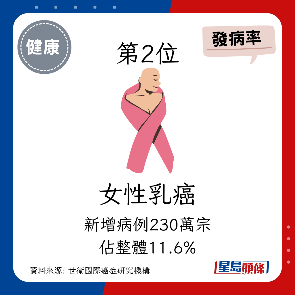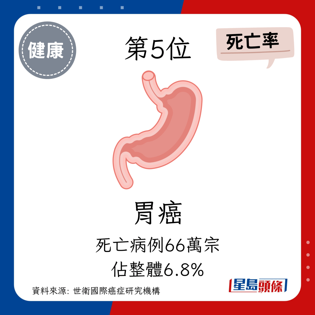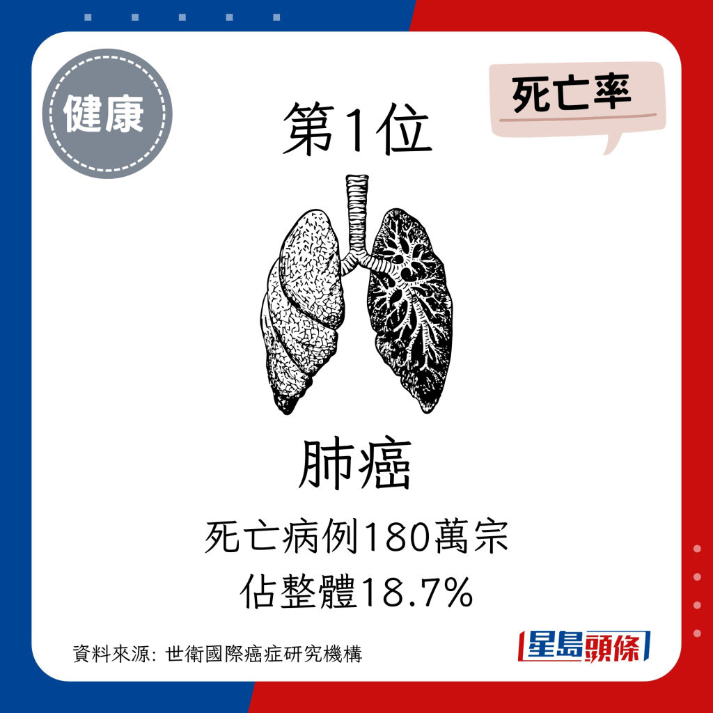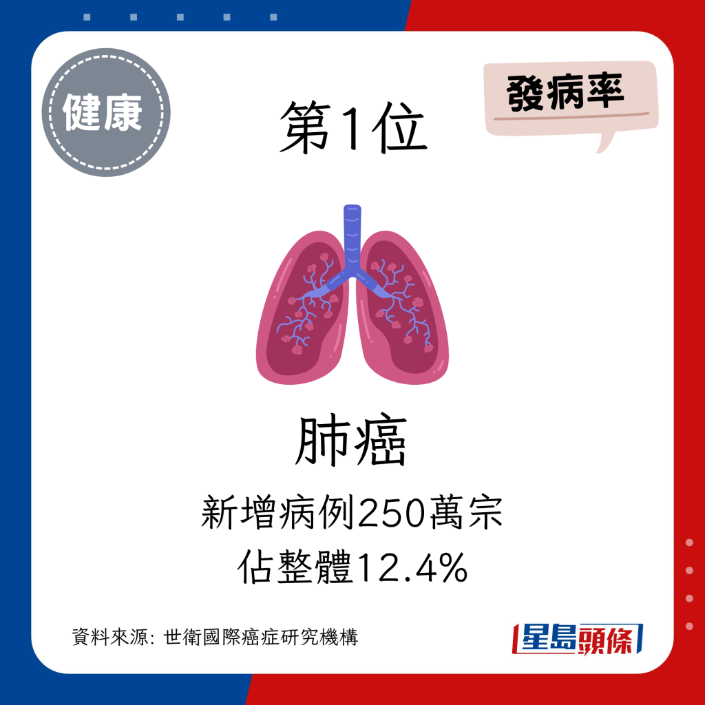 全球癌癥個(gè)案未來將增77% 小心頭3位致命癌癥