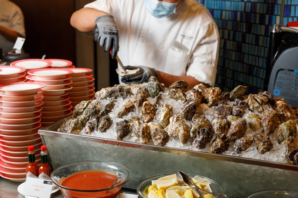 “和風?莓滋味”自助晚餐除了有即開生蠔,還有鱈場蟹腳、面包蟹、波士頓龍蝦、紅蝦、油甘魚,還有金腿花膠海鮮雞湯、傳統(tǒng)瑞士熱溶芝士,周末更有限定帶子、日式海膽醬薯仔沙律、香煎羊扒配露絲瑪利汁、香煎牛舌等,亦會于5月12日母親節(jié)當日為媽媽們送上黑糖桃膠椰皇燉蛋白。