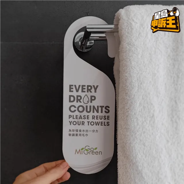 該酒店房務(wù)部總監(jiān)表示,除了替代品配套到位,向客戶解釋減塑安排也相當重要,酒店每轉(zhuǎn)用一件洗漱用品時,都會為員工安排培訓、簡報,讓他們了解公司最新安排,以便向住客解說情況。此外酒店亦從細節(jié)入手,在房間擺設(shè)一些提示紙卡,例如鼓勵重用毛巾,減少不必要浪費。