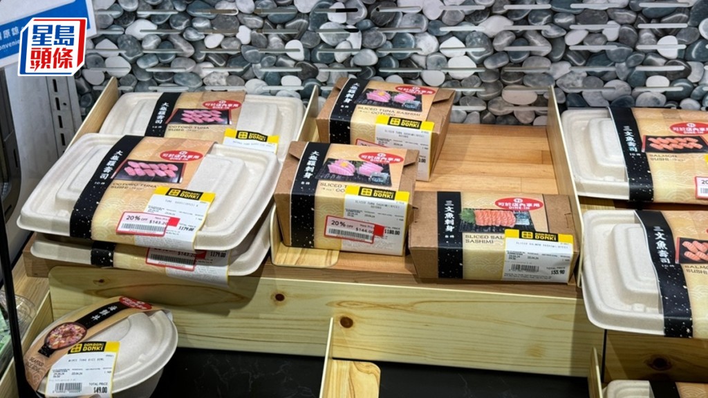 《星島頭條》記者今午(23日)前往其中一間分店,發(fā)現(xiàn)店內(nèi)有約兩成壽司或丼飯轉(zhuǎn)為紙盒紙蓋,有告示標(biāo)明“法例規(guī)定堂食不可使用即棄塑膠容器”、“如欲于店內(nèi)享用食物,請(qǐng)選購貼有可于店內(nèi)享用標(biāo)簽的食品”。