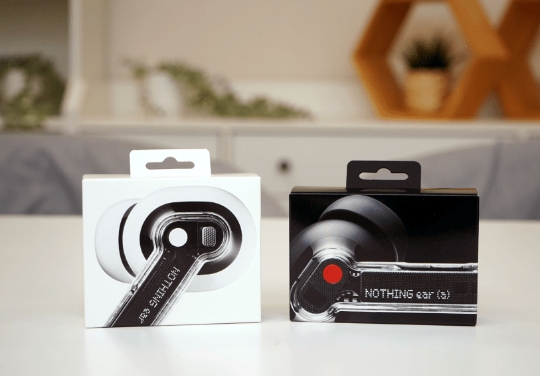 ▲Nothing Ear(左)及Ear (a)(右)繼續(xù)以無塑膠包裝,封面印有大型耳機(jī)圖片。