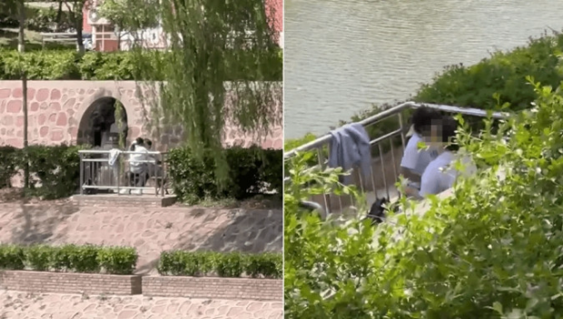 據(jù)內媒報道,事件發(fā)生在河南省鄭州升達經貿管理學院,有人目擊一對小情侶在校內孟子像旁的長椅上演“觀音蓮座”跨坐激戰(zhàn),被不只一名同學從不同角度拍下影片。從網(wǎng)上曝光的畫面可見,少女跨坐在男生腿上,兩人瘋狂搖擺、深情擁吻。