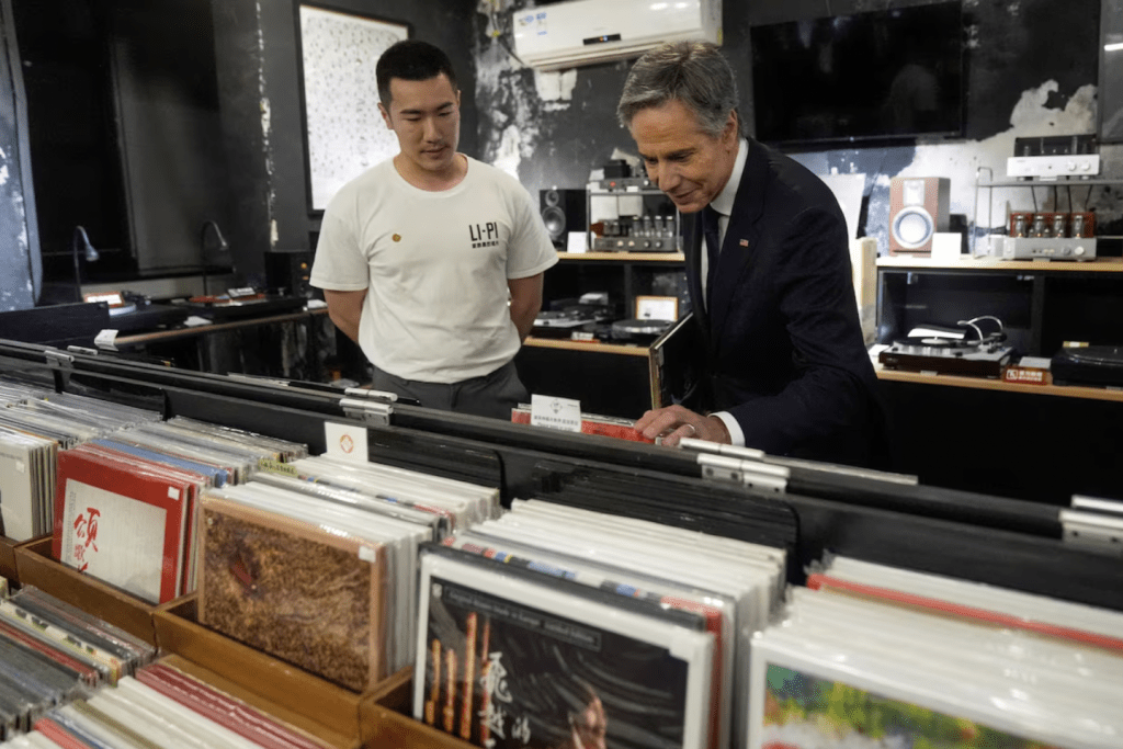 布林肯離京前突訪文青唱片店,買(mǎi)2巨星黑膠碟做紀(jì)念品