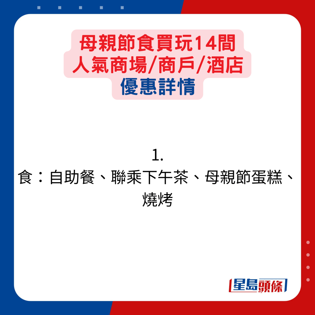 母親節(jié)食買(mǎi)玩優(yōu)惠大檢閱!自助餐買(mǎi)2送2,酒店水療近半價(jià)