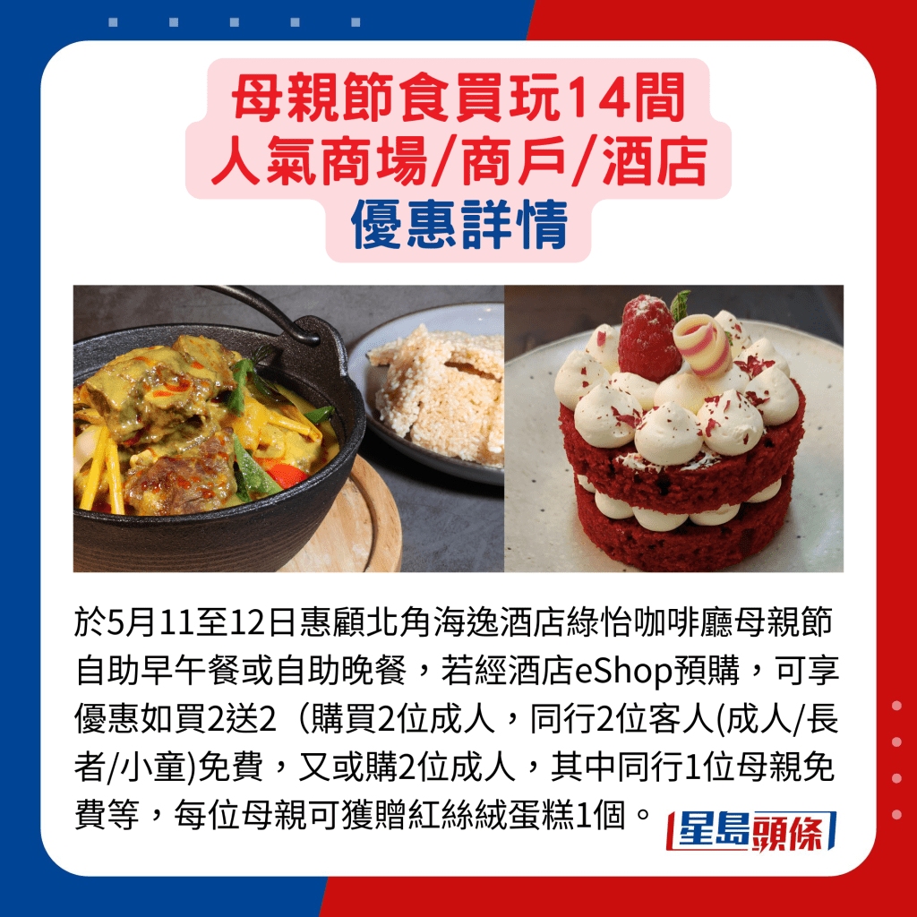 母親節(jié)美食優(yōu)惠|網(wǎng)上預(yù)訂自助餐最抵買(mǎi)2送2