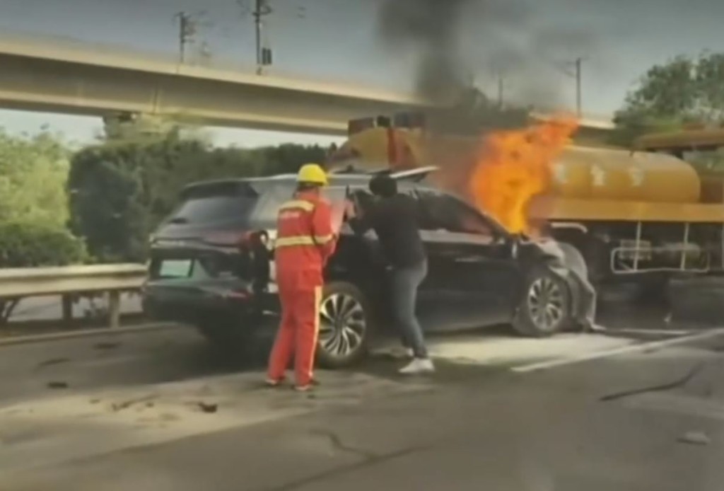 山西問界M7電動SUV追尾灑水車爆炸,3男罹難包括1名2歲童
