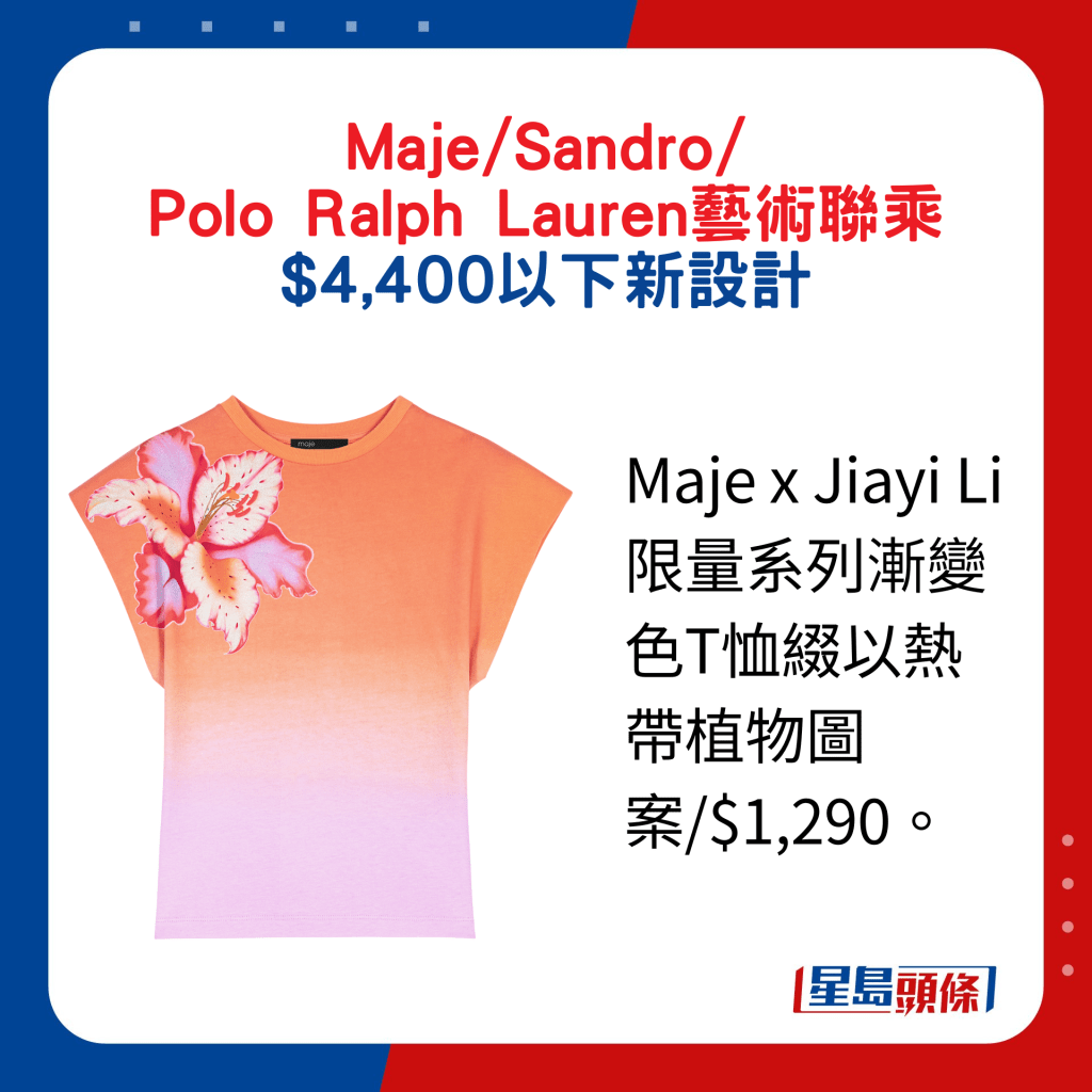 Maje x Jiayi Li限量系列漸變色T恤綴以熱帶植物圖案