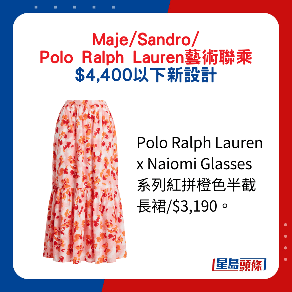 Polo Ralph Lauren x Naiomi Glasses系列紅拼橙色半截長裙