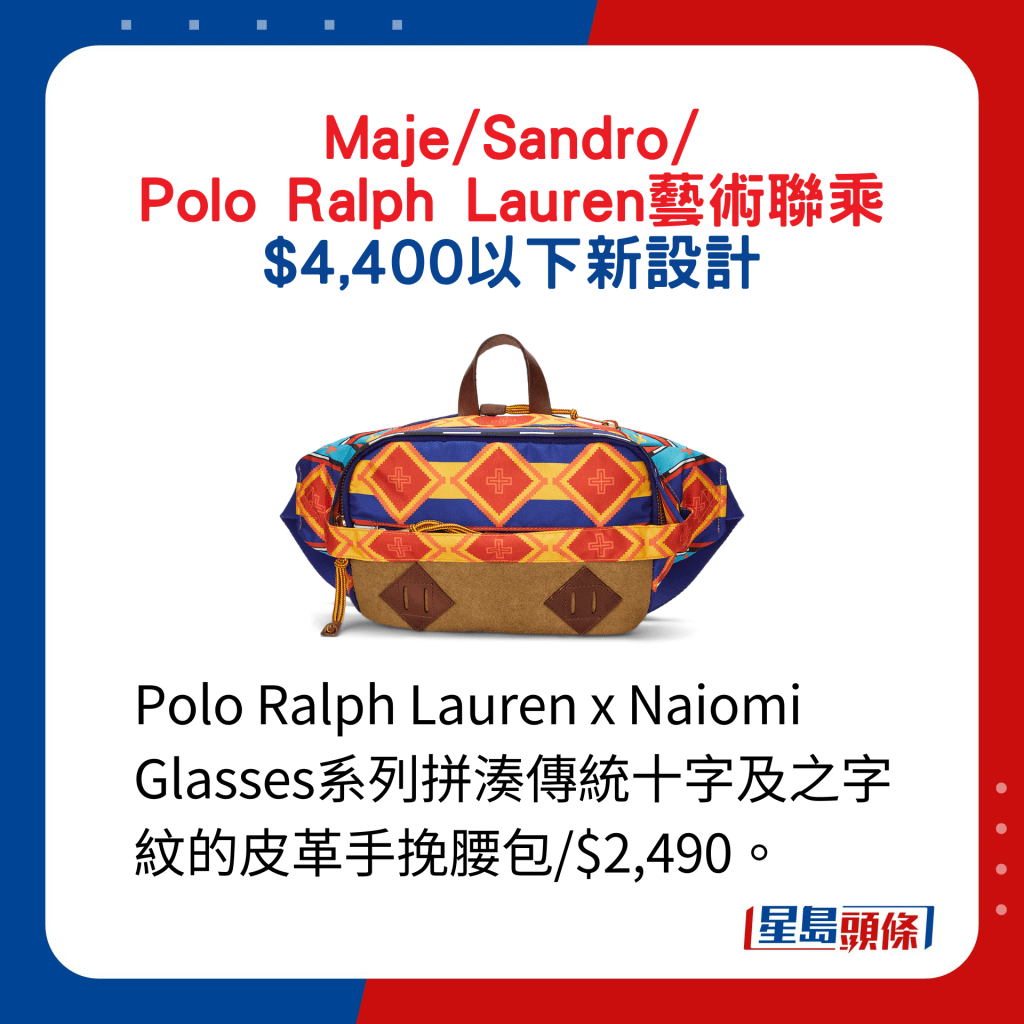 Polo Ralph Lauren x Naiomi Glasses系列拼湊傳統(tǒng)十字及之字紋的皮革手挽腰包