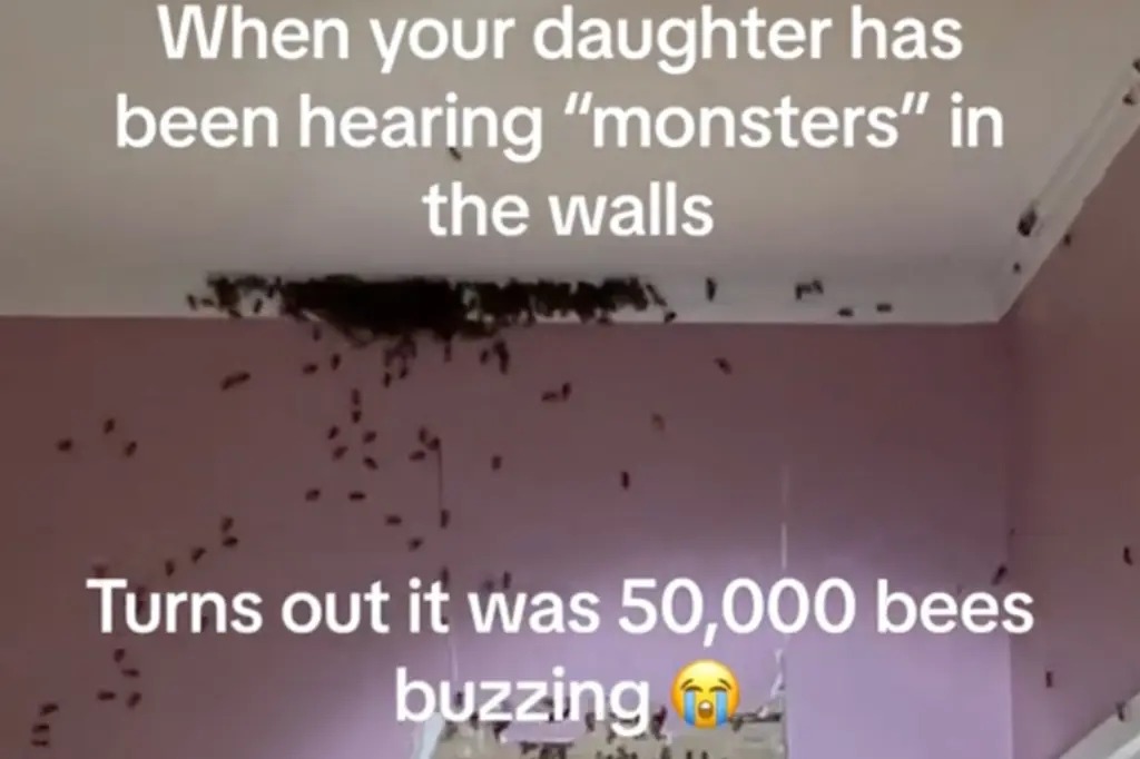 居于美國北卡羅來納州的婦人艾希莉.克拉斯 (Ashley Class) 近日在TikTok網(wǎng)站發(fā)片,述說她的三歲女兒告訴她,女兒臥室里有“怪物”。艾希莉聽后最初心里也“發(fā)毛”,但為了女兒安全著想也不得不硬著頭皮深入查究。最終也查明真相,結果令她感到出人意表,居然是女兒房內(nèi)有蜜蜂群在墻壁內(nèi)生長了8個月,且數(shù)目已增至5萬只。而艾希莉這段TikTok片,得到了點擊次數(shù)高達910萬次。
