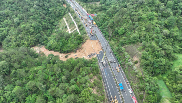 另一名路過司機表示,自己在事故發(fā)生后約半小時到達出事地點附近幾公里的位置,當時見前面的車逆行回頭,才知道前方道路有坍塌,他跟著大部隊逆行回到附近茶陽服務區(qū)。