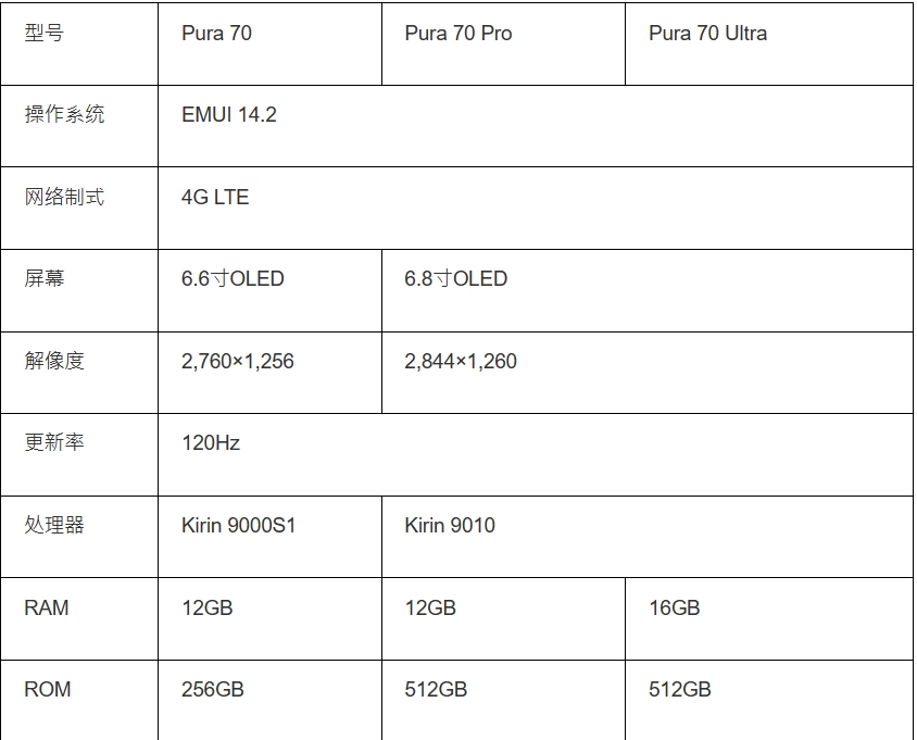 Pura 70系列港版規(guī)格一覽 Pura 70/Pura 70 Pro/Pura 70 Ultra