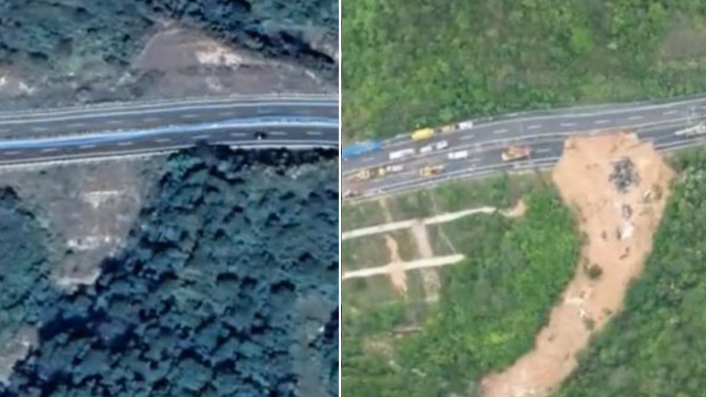 衛(wèi)星圖對比梅大高速塌陷事前事后慘況。
