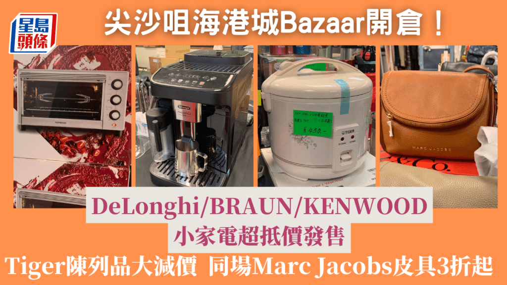 尖沙咀開倉|尖沙咀海港城展銷集今期舉行名牌家品及服飾大特賣,由即日起小家電及名牌服飾開倉大激減,多款DeLonghi、BRAUN、KENWOOD咖啡機、焗爐、電水壺等陳列電器及廚具特價發(fā)售,其中Tiger暖水壺、保暖壺及電飯煲以特賣價出售。除了小家電及家品以外,同場的名牌服飾開倉亦有小資女力捧的Marc Jacobs手袋、銀包低至3折起,不容錯過!
