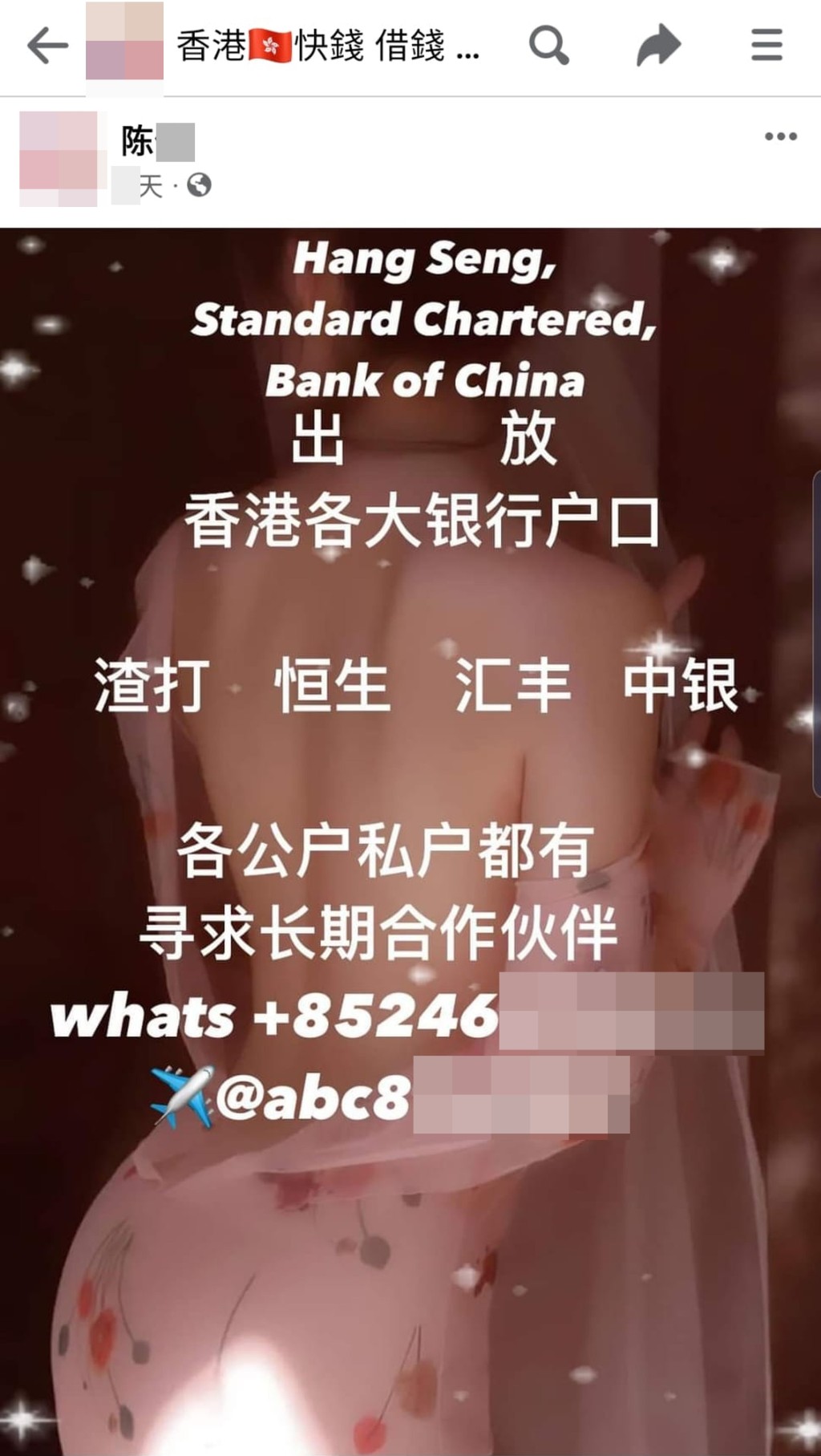 記者根據(jù)線索瀏覽其中一個“搵快錢”群組,發(fā)現(xiàn)充斥不同類型的賺錢方式,當中不乏收購大量銀行戶口的貼文,內(nèi)容通常明確指定需要那間傳統(tǒng)銀行或虛擬銀行戶口,部份會表明收購或租借價目,一般數(shù)千元。為更深入了解情況,記者在多個貼文留言,表示有意出售,未幾收到一名收購者的訊息,對方指租借戶口期限為3個月,中銀和渣打戶口每個5000元,星展和大新戶口4000元,每3個月續(xù)租一次,屆時再次付款,但銀行戶口必須要與一個加密貨幣交易所綁定;被問到續(xù)租的期限,對方則說“唔定”。