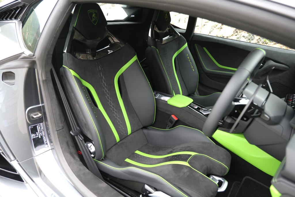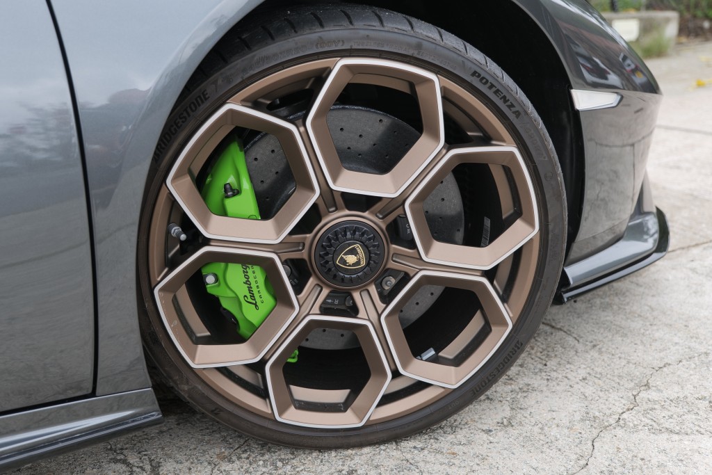 外觀上,Huracán Tecnica跟其他兩款“終極版”更特別,首先是頭燈兩邊增設(shè)巨大Y字形透氣孔,賣相很像限量版Sián。廠方指Tecnica引用了Huracán EVO Spyder版車殼改造,背部?jī)蓚?cè)及車尾重新設(shè)計(jì),減省了Coupe版兩側(cè)后端車窗,造型更矮,輪廓頗像Essenza SCV12概念車,配合新型固定式尾翼及擾流裝置,整體氣流下壓力提升35%,阻力減少20%。車廂沒(méi)有大改動(dòng),同樣配有直立式中控觸控屏幕。示范車加有多項(xiàng)附加設(shè)備,包括Grigio Lynx深灰色車身、光面碳纖維引擎蓋、20吋銅色Damiso鉆石切割輪圈、青綠色煞車鉗、雙色車廂、碳纖維Sport座椅、后泊鏡頭及手機(jī)連接系統(tǒng)等,落地價(jià)連稅超過(guò)550萬(wàn)元。