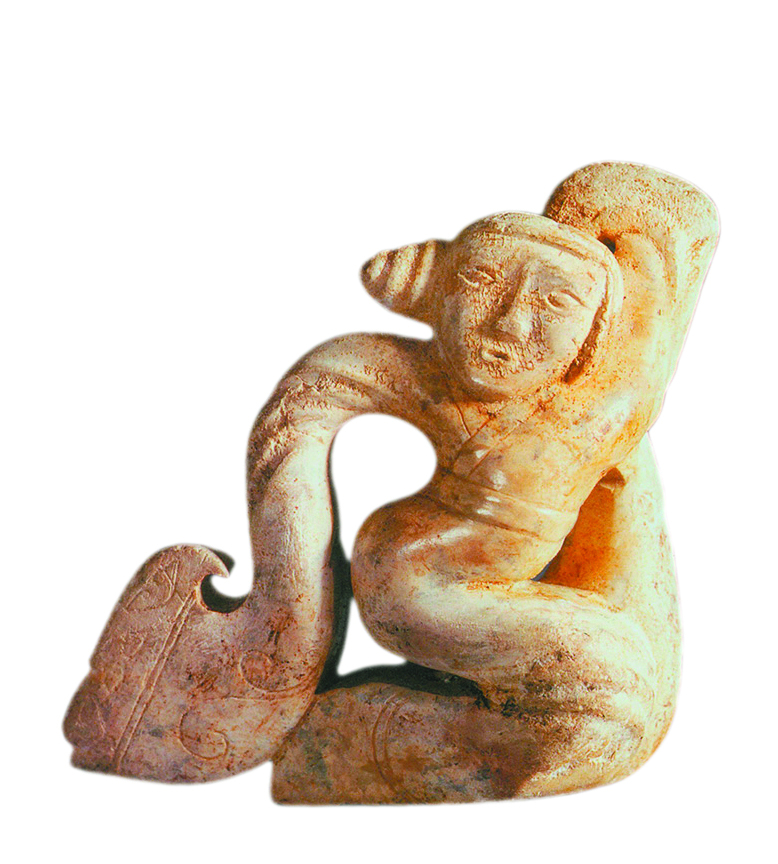 50萬秦軍南下初到嶺南時,他們所見的越人形象充滿了原始而自然的氣息:越人赤腳,常披散著頭發(fā)或?qū)㈩^發(fā)梳成椎髻束于頭頂,面部、身上、臂膀、大腿上文有圖案,身著“貫頭式”衣服——一種將布剪個洞、從頭套入的簡易服裝。