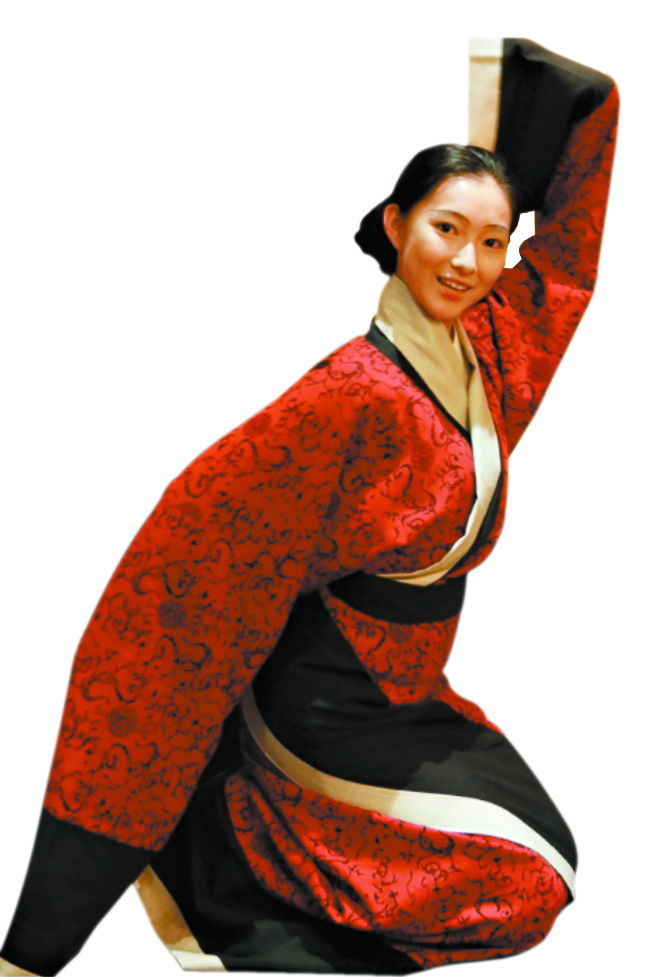 ▲南越王墓講解員復(fù)刻館藏文物“圓雕玉舞人”裝扮。(受訪者供圖)