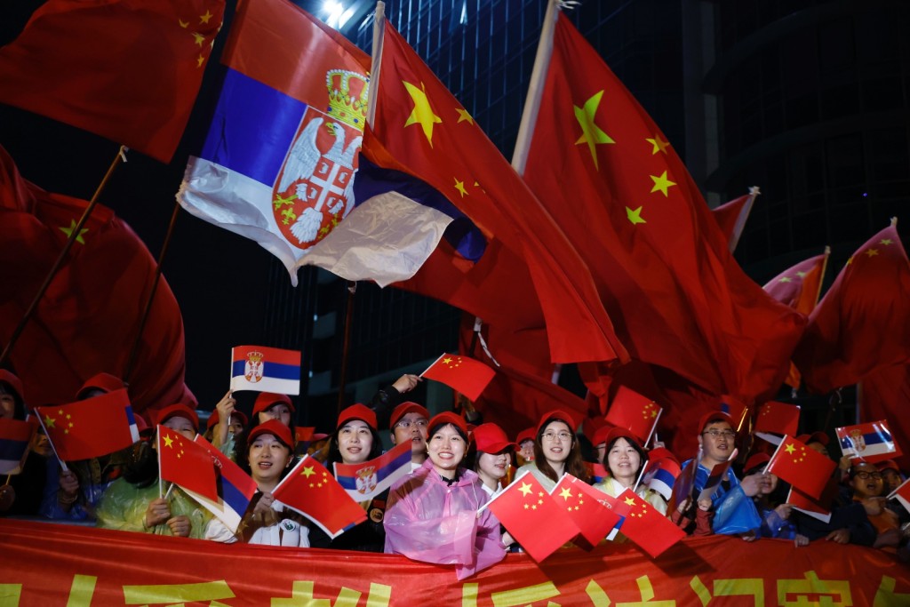 大批華人華僑、留學(xué)生,和塞爾維亞民眾夾道歡迎。