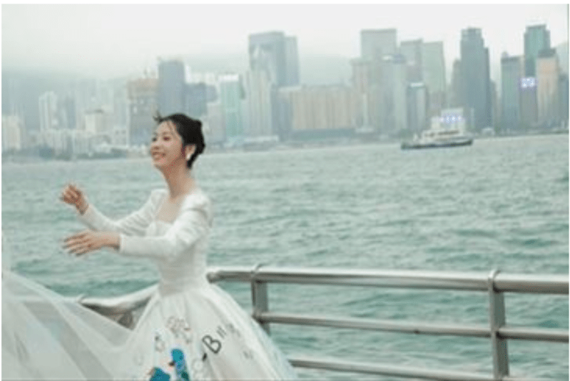 香港尖沙咀海旁的維港海景在國(guó)際間享負(fù)盛名,年中吸引不少新婚夫婦來(lái)港拍攝婚紗照片。 近日,就有內(nèi)地新娘子在維港拍攝婚照,其身穿一條獨(dú)一無(wú)二的婚紗驚艷全場(chǎng),沿路吸引眾多途人目光成為維港焦點(diǎn),特別的婚紗背后更原來(lái)別具意義!