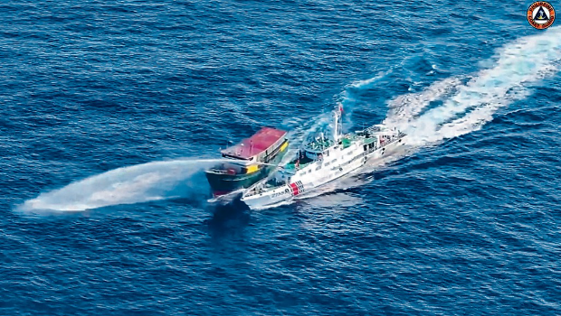 南海爭(zhēng)議|菲律賓補(bǔ)給船再闖仁愛礁被中方水炮驅(qū)趕,海警局:玩火者必自取其辱