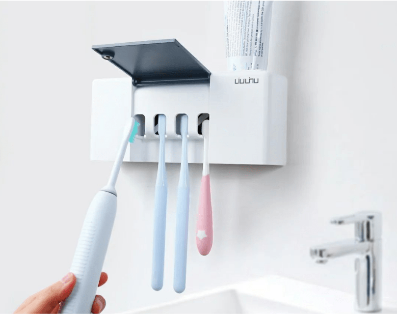 掛墻的掛架款式:一般可以放2至4支牙刷,并附有擠牙膏架,適合一家人使用,部分型號(hào)同時(shí)內(nèi)置風(fēng)干功能,除菌之余,還能令牙刷保持干燥,從而抑制細(xì)菌。
