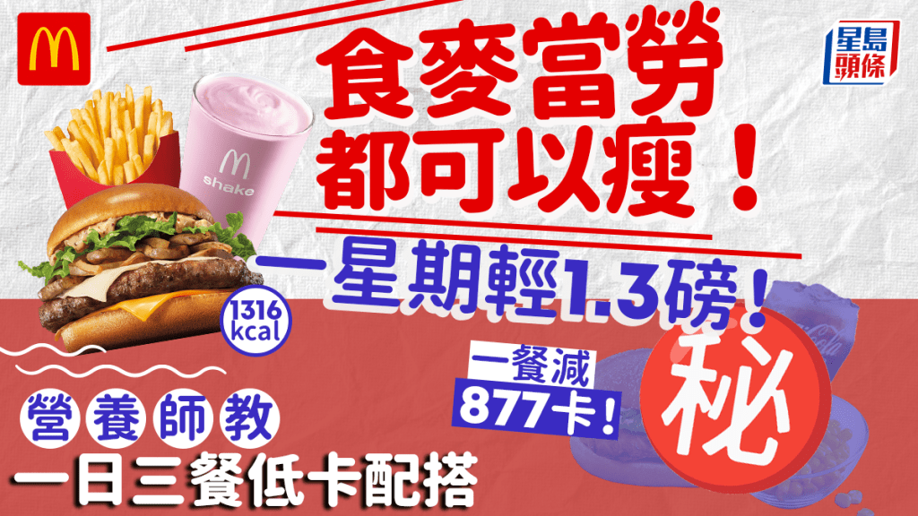 不少人減肥也會(huì)戒吃快餐,避免高糖高脂飲食。 不過,有營(yíng)養(yǎng)師指出,只要懂得選擇,減肥也可以吃“麥當(dāng)勞”! “尚營(yíng)坊”營(yíng)養(yǎng)師團(tuán)隊(duì)教配搭低脂低卡食物,一周可減1.3磅(約0.6kg)! 他們又列舉多種“邪惡”與健康經(jīng)合,選得對(duì),一餐最多可減877kcal! 減肥又想吃麥當(dāng)勞,可考慮營(yíng)養(yǎng)師推薦3款低卡低脂套餐,滿足食欲。