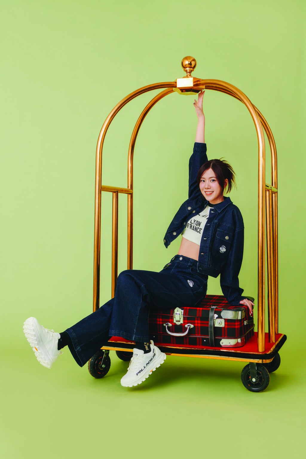 ▲本地人氣女團Lolly Talk成員Tania以牛仔服配襯Palladium新推的Pallalibre鯊齒鞋 /$1,020,休閑型格。