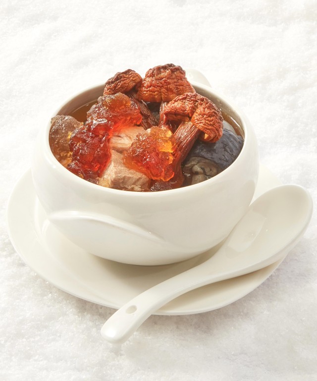 想喝合時中菜湯水,可選原燉花膠爵士湯,選用新鮮豬肉、去皮老雞、花膠、響螺頭及雞腳等煲約4小時,湯汁隔渣后,再加美國蜜瓜燉半小時,湯水鮮甜不油膩。 時令中菜之中,除三瓜餐單外,林師傅還推出阿翁滋補珍饌8道宴($990/位)的養(yǎng)生菜譜,菜式包括脆皮原只花膠、原只吉品鮑?;曙埖龋际邱尜F的滋補中菜。