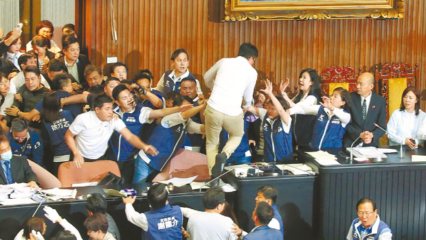 臺灣立法機構議場昨一早就在門口上演全武行,場內更是終日喧囂扭打。國民黨團批評,民進黨“立委”攻擊在野黨“立委”,必須給予民進黨團及民進黨主席賴清德最嚴厲的譴責;民眾黨主席柯文哲也呼吁,賴清德勿放任自家“立委”背棄理想。另一方面,民進黨痛批,藍白強渡濫權,錢坑法案、民主之恥。