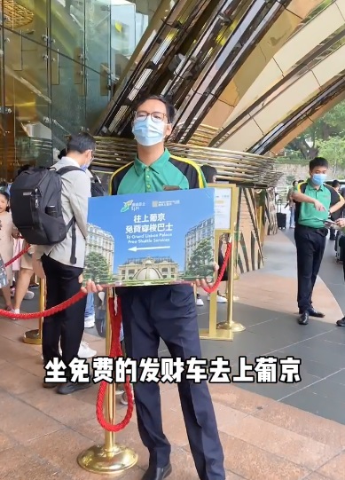 再步行15分鐘到新葡京,進(jìn)去左手邊后,可免費(fèi)拿飲品及點(diǎn)心,直接拿便可以。之后再步行100米,到附近的金碧二樓餐臺(tái),吃到免費(fèi)的碗仔翅,面包及飲品,再坐免費(fèi)接駁車到上葡京,進(jìn)去后到右手邊有免費(fèi)的醬香拿鐵,現(xiàn)場(chǎng)還有蛋糕、葡撻、雪糕,再步行15分鐘到永利皇宮,可以在湖邊排隊(duì)免費(fèi)坐觀光纜車。