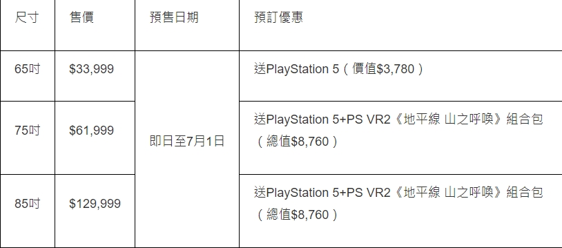 BRAVIA 9即日起至7月1日接預訂,凡預訂75吋或85吋型號,可以免費獲得PlayStation 5游戲主機及VR裝置PlayStation VR2《地平線 山之呼喚》組合包(總值$8,760),至于入手65吋型號則會送PlayStation 5游戲主機(價值$3,780)。若然加購指定BRAVIA Theatre產(chǎn)品,另可享$2,500優(yōu)惠。