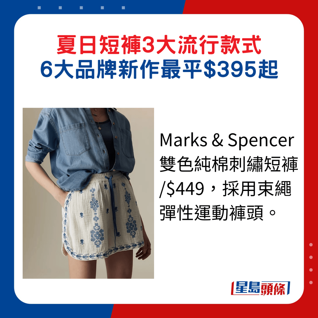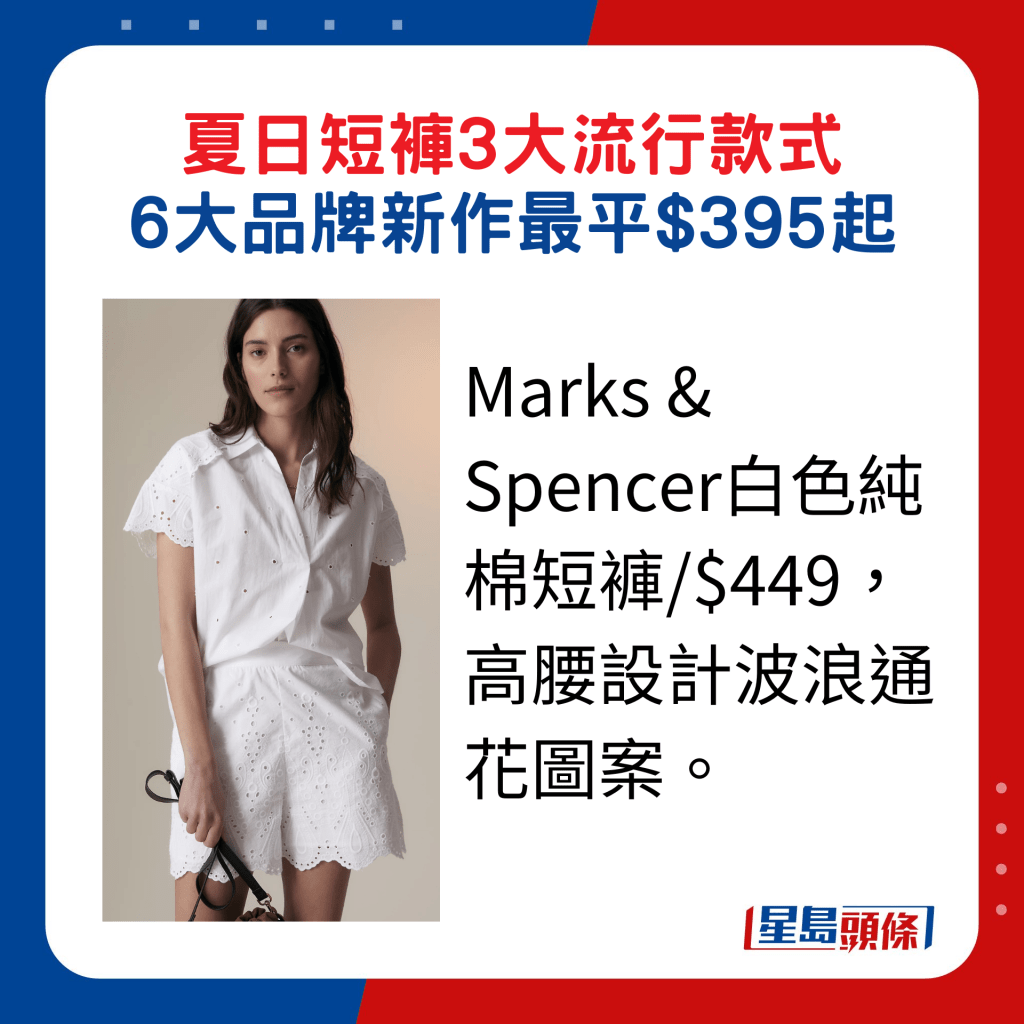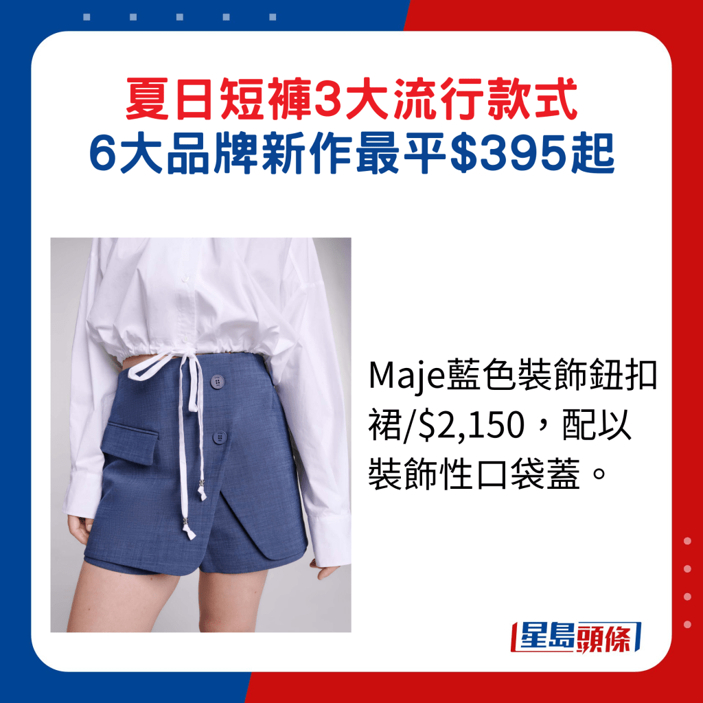 短褲穿搭可凸顯雙腿的修長線條,好像BLACKPINK成員Lisa就以超短牛仔熱褲配搭白色短身上衣及長靴,營造極佳的身形比例,更顯型格。 想為造型加分兼且修飾雙腿,不妨挑選一些飾以精致細(xì)節(jié)的款式,如Maje新推的Denim系列便以水鉆及珍珠作裝飾,其中牛仔短褲的褲邊綴上水鉆流穗,華麗之余,走動時也倍添動感。 此外,Marks & Spencer今季亦有推出工裝短褲及亞麻混紡高腰短褲等,當(dāng)中亦有以Sport Shorts為藍(lán)本設(shè)計的款式,飾以復(fù)古藍(lán)色花卉圖案,又或以通孔勾織圖案配搭波浪褲邊,夏日休閑造型必備。